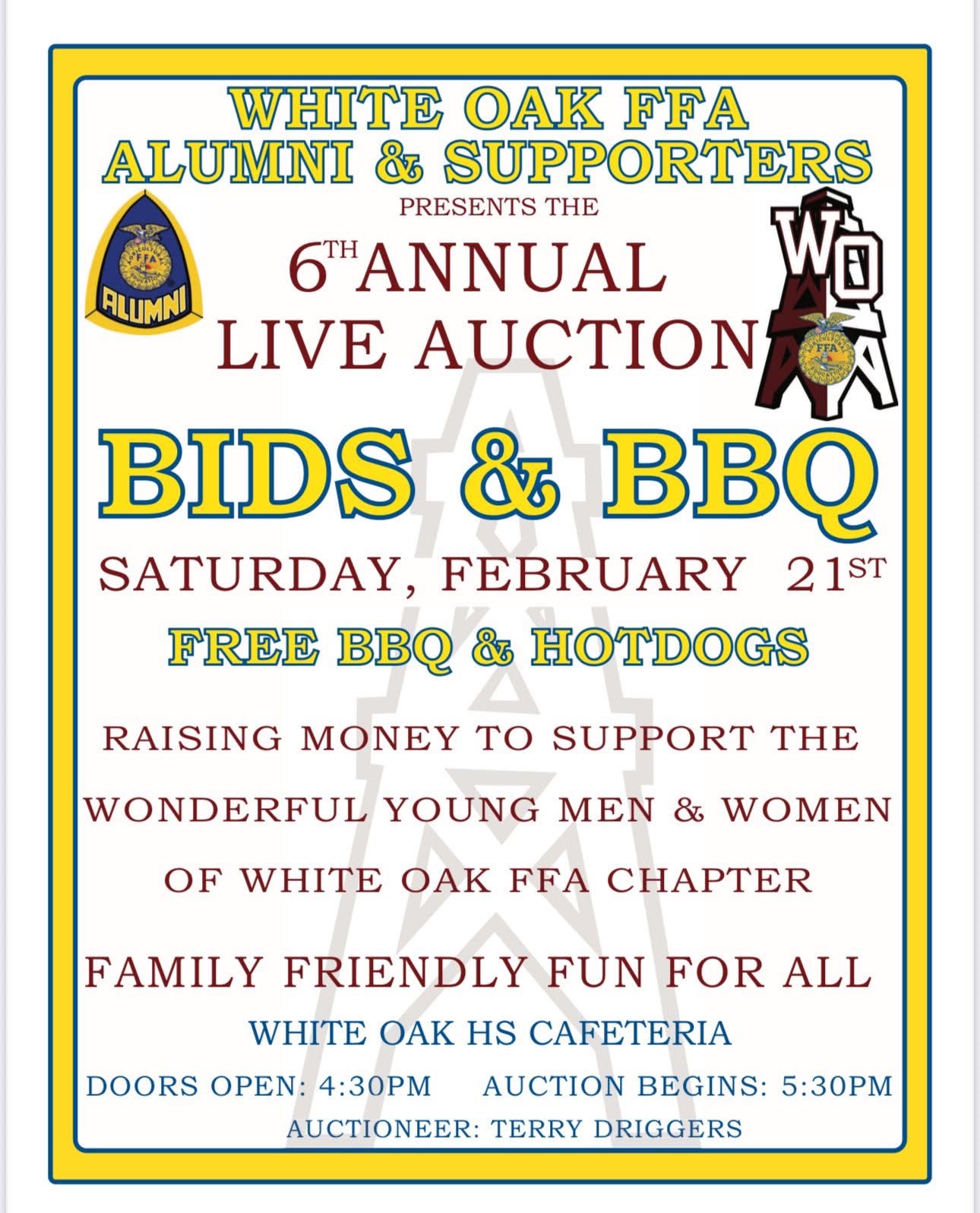 You do NOT want to miss this event. Mark your calendars for THIS SATURDAY!!! This event supports every single FFA Member from 3rd-12th grade to provide meals, travel expenses, Supervised Agricultur...